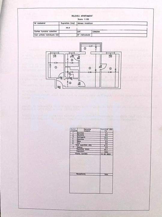 Apartamentul dispune de o suprafață totală de 44,4 mp, atent optimizată pentru a oferi un echilibru excelent între funcționalitate, confort și ușurință în utilizare.